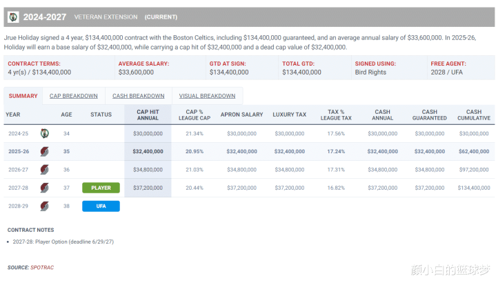 朱哥是昔日的一防后卫,他曾经是以后卫身躯顶勒布朗的存在,他还剩三年1.04亿的合同,虽然霍勒迪年龄已经偏大了,但他的组织能力、防守能力都在,他在湖人打一号位去帮东契奇防守后场是很好的选择。