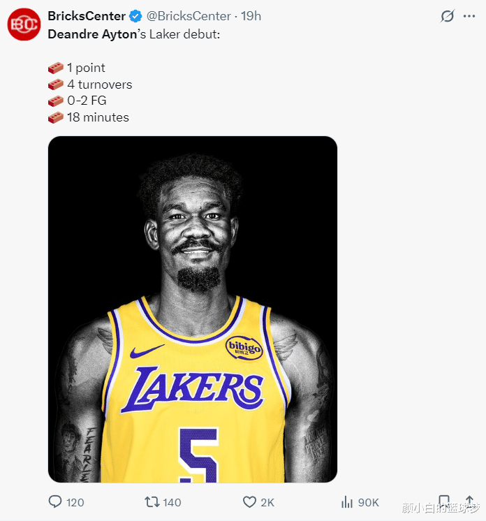艾顿在湖人的首秀堪称灾难,18分钟,2中0,拿到1分4失误8篮板1抢断2盖帽,他最拿手的中投我们没有看到,但看到了他最拿手的‘畏惧对抗’、‘软到极致’。