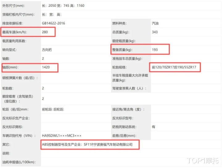 另一项备受关注的数据是整备重量,820RR申报数据为193kg,和之前公布的基本版本数据一致。相较于另外两个版本,820RR的性能、配置、轻量化没有那么惊艳,但是价格有望达到了更多人的期望值,毕竟这台基本版才是走量的型号,另外两个版本可能还需要等待更久。毕竟更强的发动机,内部的高强度零部件就越多,而且需要更多的时间去测试,另外顶配的车型还有一些进口品牌的顶级配置,比如GP4卡钳,天蝎排气等等,没在零部件的供应上可能需要更多时间。
