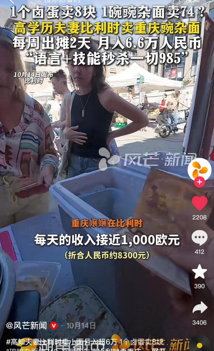 最近网上有两个事挺火。一个甘肃小伙在爱尔兰送外卖,每天工作十五六个小时,一天挣一千多块,一个月能拿三万多。他英语说得溜,客人给的小费比别人多。另一个比利时有对博士夫妻,卖重庆豌杂面,每周只出两天摊,一个月赚六万多。两人英语好,外国顾客觉得面好吃,生意特别火爆。